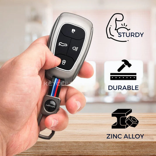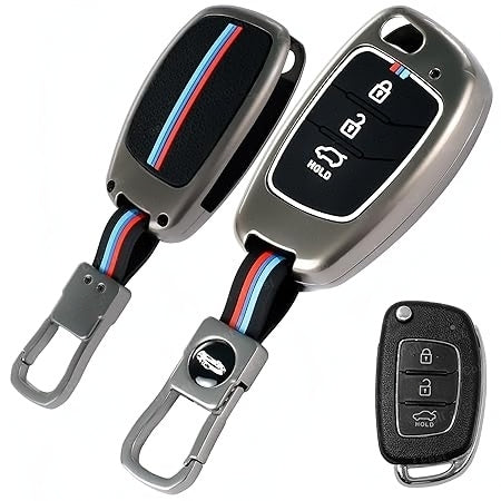 Leather Metal Key Cover for Hyundai Aura | Exter | Venue | Nios | Xcent | i20 Active | i20 Elite | Creta Flip Key (3 Button Smart Flip Key)